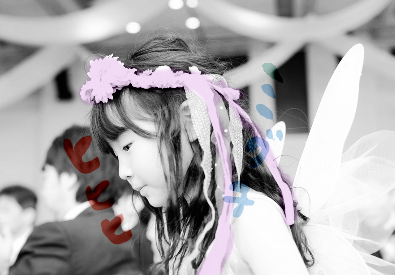 背中に羽つけての入場