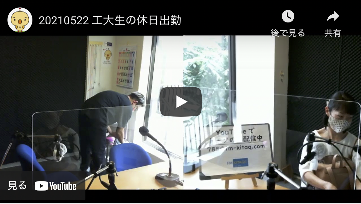 先日、5月22日にFM kitaqの番組「工大生の休日出勤」に出させて頂きました。
